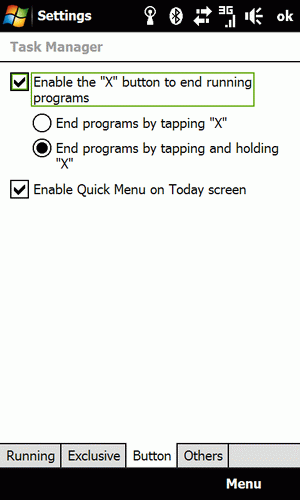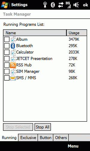 Czerwona słuchawka miała drugorzędną funkcję już w poprzednich PDA HTC. Tutaj też mamy możliwość skonfigurowania (choć nie dowolnego), jaką operację ma przeprowadzić PDA po jej przytrzymaniu. Odpowiada za to funkcja ukryta na jednej z zakładek powyższego menu konfiguracji klawiszy. Przytrzymując czerwoną słuchawkę możemy np. wyłączyć moduł telefonu, zablokować ekran i klawisze, rozłączyć połączenie z Internetem, czy też wyciszyć PDA i uruchomić wibracje (choć to samo uzyskamy przytrzymując klawisz zmniejszania głośności). Dla tych niezdecydowanych jest jeszcze funkcja wyświetlania listy wymienionych funkcji, które wystarczy wtedy kliknąć palcem.