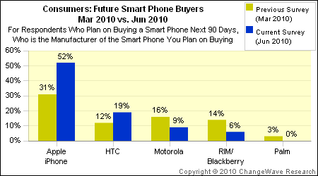 Jak wynika z badań Przez najbliższy kwartał będą królować Apple i HTC przy sprzedaży urządzeń. Badanie zostało przeprowadzone w czerwcu, więc nie uwzględnia najnowszych urządzeń wprowadzonych na rynek np. przez Motorolę.